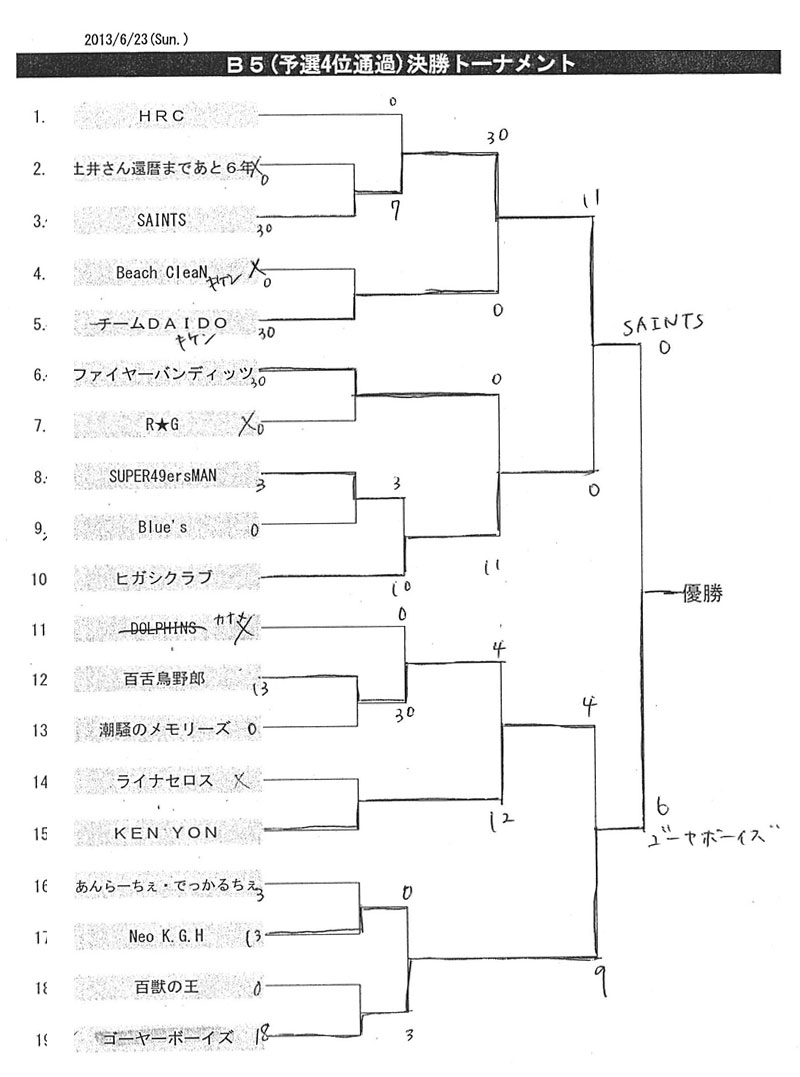2012年ビーチラグビー白浜大会 決勝トーナメント試合結果 ※得点記入の無い試合は不戦勝