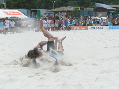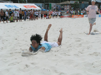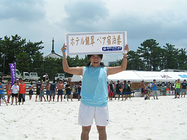 ビーチフラッグス女子決勝。ブッチ切りの早さでした。 |