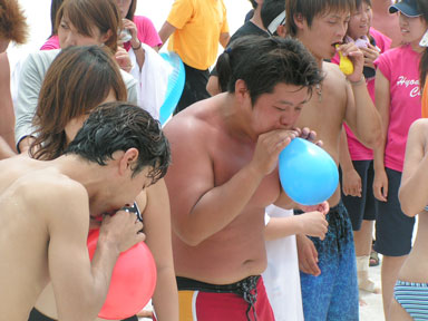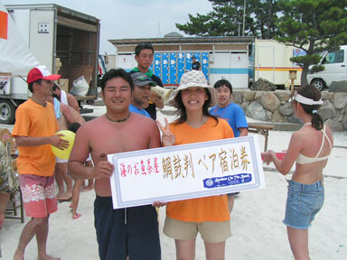 風船割りゲームで見事、ペア宿泊券ゲット!おめでとう! |
