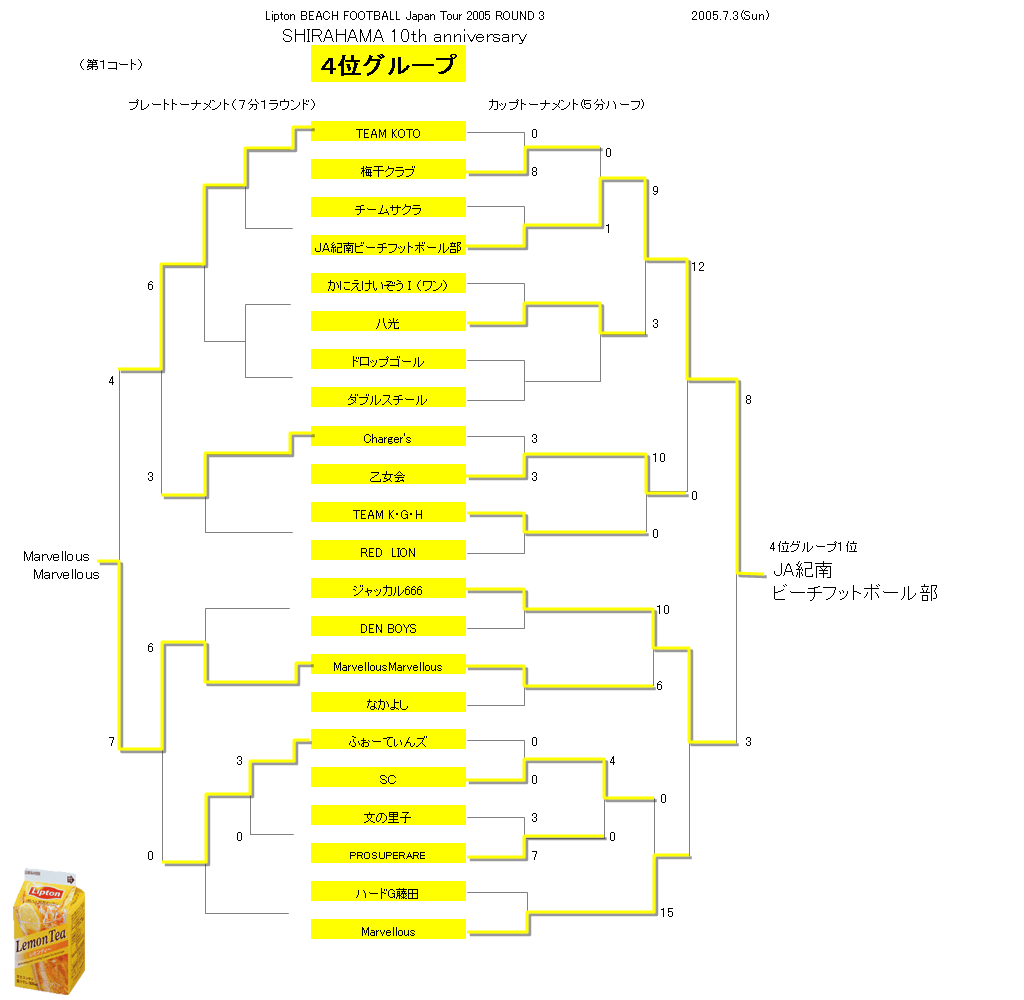 2005年ビーチフットボール白浜大会 決勝トーナメント試合結果 ※得点記入の無い試合は不戦勝