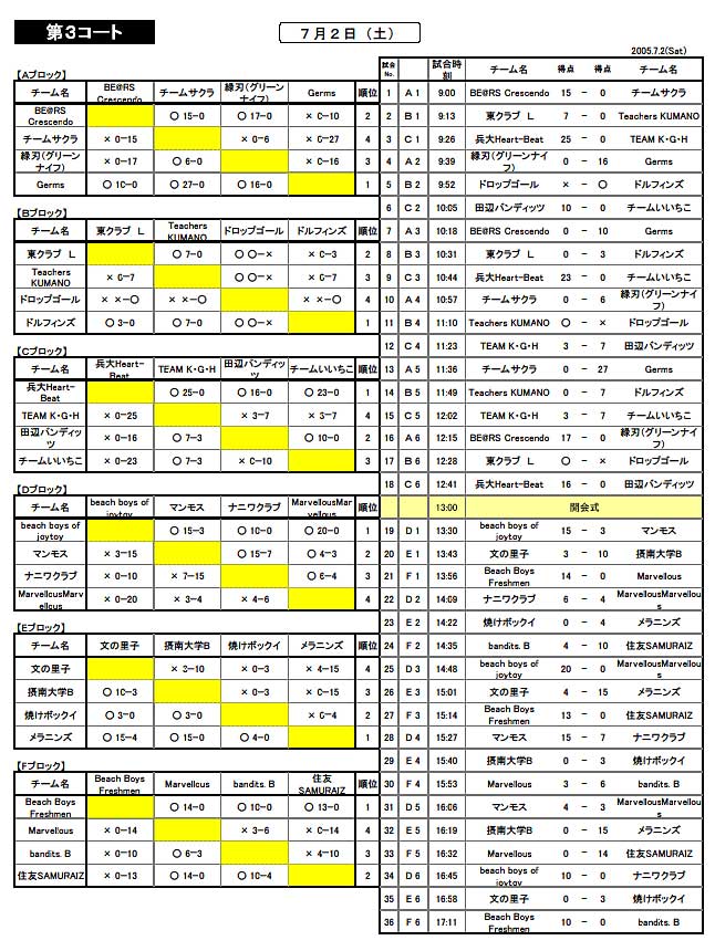 第10回ビーチフットボール白浜大会 予選リーグ試合結果 [2005.7.2]