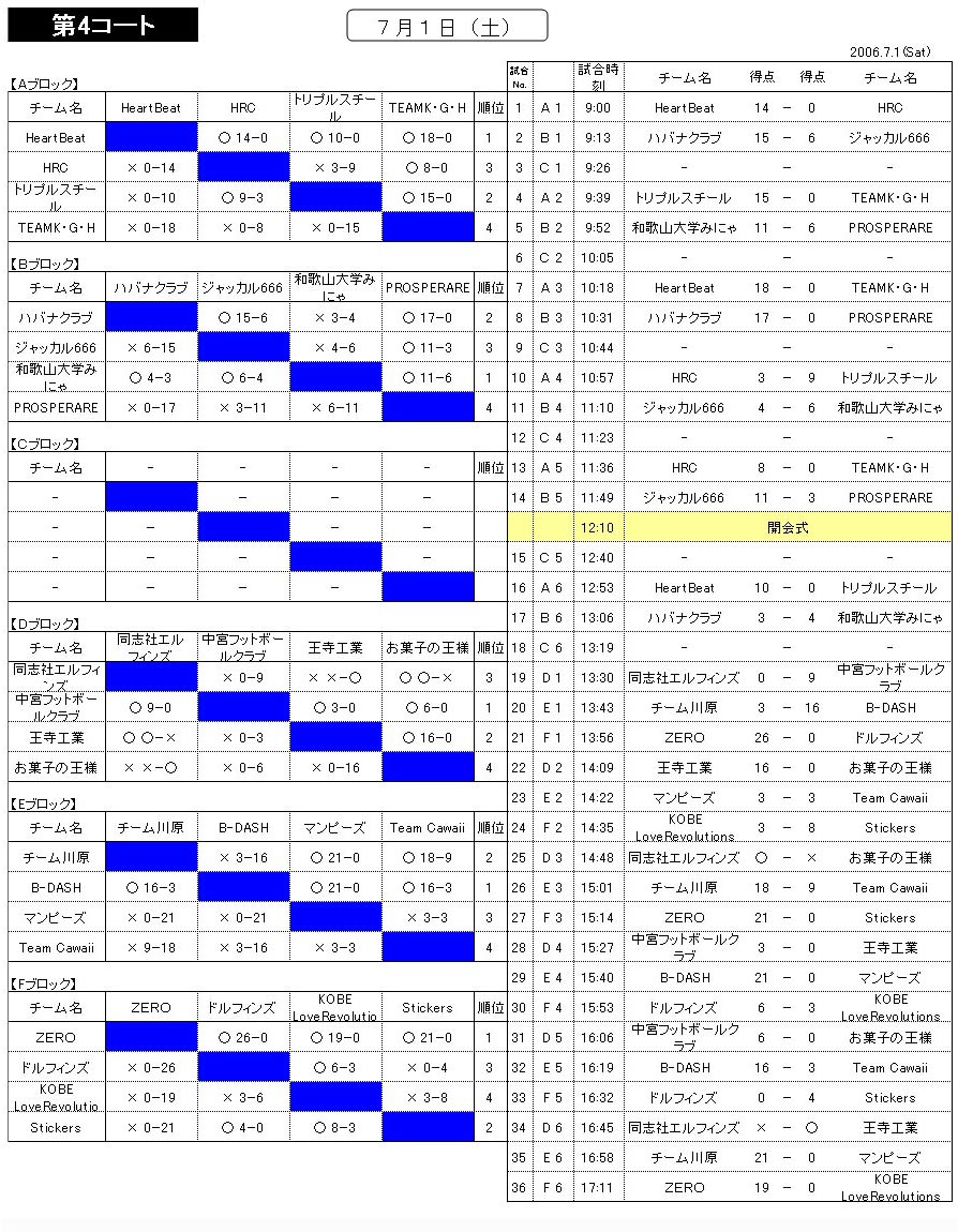第11回ビーチフットボール白浜大会 予選リーグ試合結果 〔2006.7.1〕